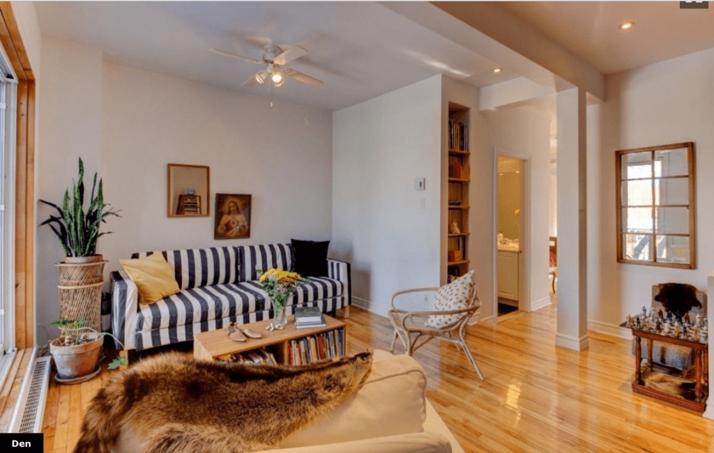 This was a huge project but the pay off was even bigger. When we started, most every wall in this two story, four-bed cottage was a different color. Paint got us part way to our goal, but styling an entire house for sale on a shoe-string budget presented other challenges and a lot of fun. We repurposed some existing furniture and painted some more to allow potential buyers to see what these rooms could be, especially the office which before staging was used as a storage room/hidey hole for the cat. The shelving unit in the office was completely fashioned out of old planks and storage crates we scrounged up from the basement! The addition of a few new lights, chairs and curtains saw us come in under budget and just on deadline. And the house sold to new happy buyers. Mission accomplished!